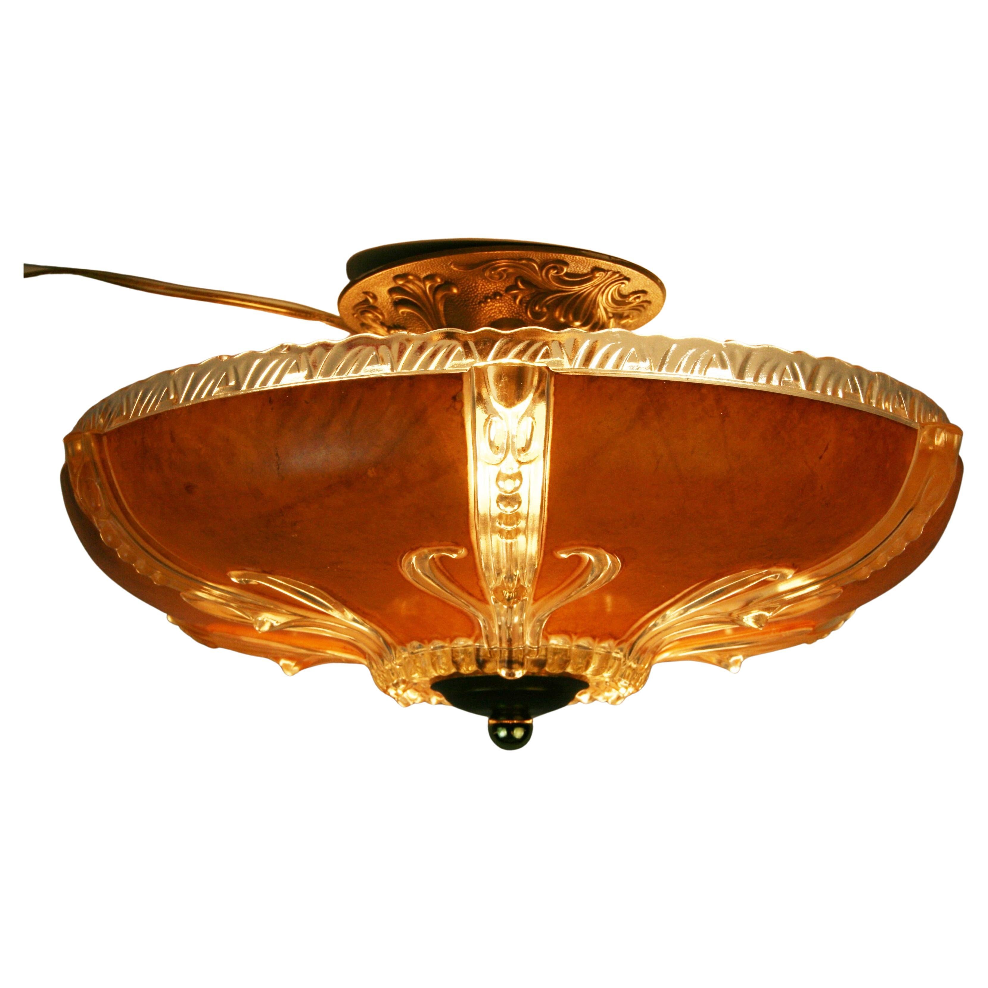 Art Deco Ceiling Light, Art Deco Ceiling Fixture, Pressed Glass Ceiling